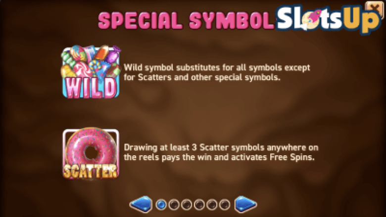 Wild (obrazek z górą cukierków). Ikona ta zastępuje przegrywające obrazki, ale sama w sobie nie jest płatna. Symbole specjalne zwiększają szanse na kombinacje nagród.