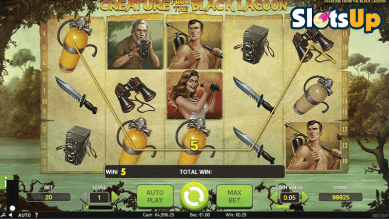 The Creature From the Black Lagoon od NetEnt jest umieszczony na 5 bębnach, 3 rzędach i ma 20 stałych linii wypłat.