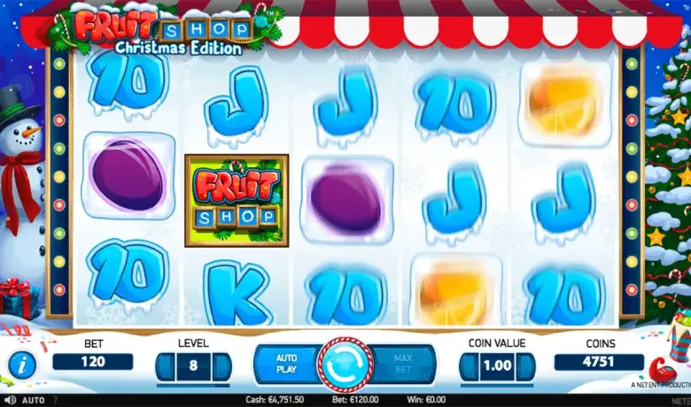 Ta świąteczna edycja popularnej gry slotowej Fruit Shop szybko wprowadzi Cię w świąteczny nastrój, ponieważ sklep otoczony jest kolorowym bałwanem i pięknie udekorowaną choinką. Sklep jest otoczony kolorowym bałwanem i pięknie udekorowaną choinką. Na ziemi jest nawet śnieg i mnóstwo lampek choinkowych, a sam sklep ma dach w czerwono-białe paski, który chroni 5 bębnów i 15 linii wypłat owocowej świątecznej zabawy.