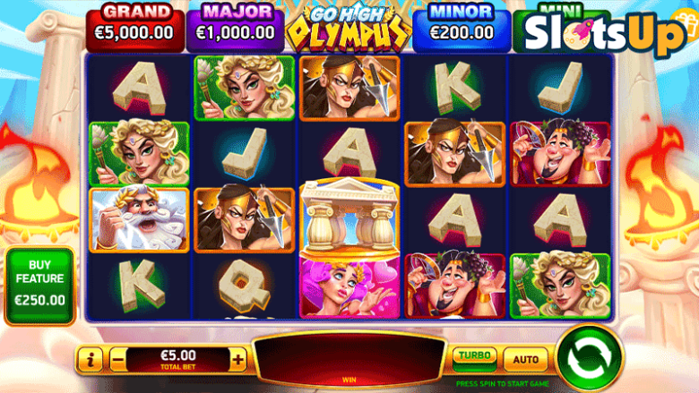 Go High Olympus gra łączy w sobie kilka funkcji na siatce 5x4, które obejmują natychmiastowe wygrane monet, symbole Scatter, symbole Wild i rundę bonusową. Co więcej, runda bonusowa może uruchomić funkcję Go High, która uruchomi potencjalne wygrane. Możesz postawić od 0,10 $ do 50,00 $ na obrót, ale maksymalna wygrana osiąga x1,000.