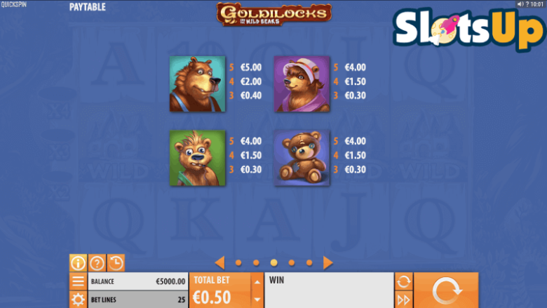 Automat Goldilocks to gra Quickspin o tematyce dziecięcej z nagrodami dla dorosłych, zwykłymi i dzikimi mnożnikami oraz obrotami darmowymi. Uważaj na dziewczynkę, a niedźwiedzie nie zrobią ci krzywdy. Zamiast tego zapewnią przyjemną nagrodę i radosną rozgrywkę. Gra została uruchomiona w 2014 roku, a niedawno została ulepszona do najnowszej wersji HTML5, dzięki czemu jest odpowiednia dla ekranów smartfonów.