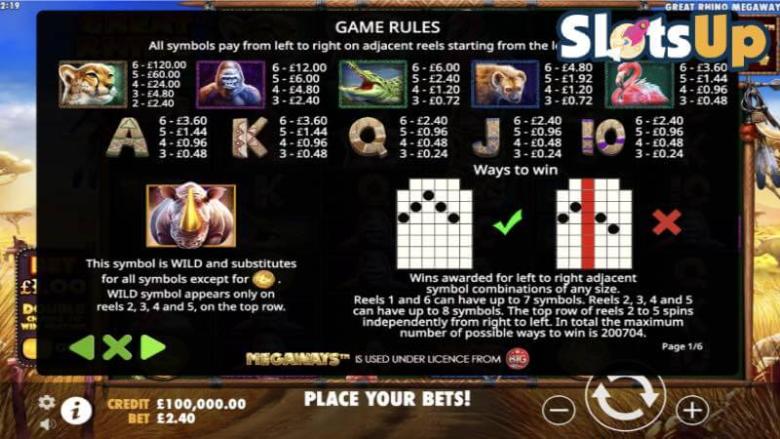 Gdy zrozumiesz również, że slot Great Rhino Megaways ma symbole Wild i ciekawą funkcję darmowych spinów, może z łatwością znaleźć się na szczycie listy ulubionych gier slotowych, nawet zanim zagrasz za darmo. Aby uzyskać nieco więcej informacji na temat różnych symboli dostępnych w slocie, możesz sprawdzić kompleksową tabelę wypłat Great Rhino Megaways, którą przygotowałem: