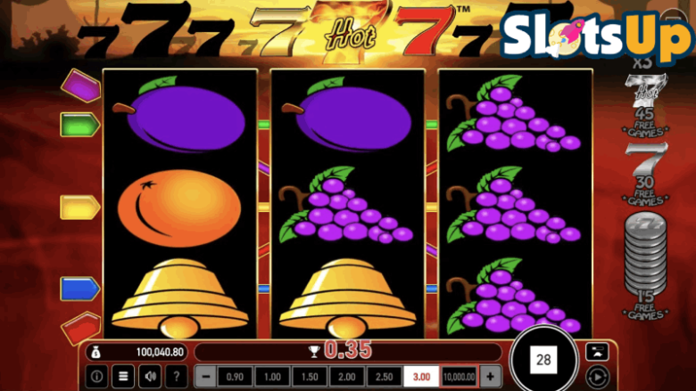 Maksymalna wygrana wynosi 3100x, a częstotliwość trafień 23,41%. Moja ocena darmowego slotu Hot 777 ujawnia jego średnią zmienność, a więc grę o ograniczonym ryzyku. Ta gra spodoba się klasycznym graczom 777 automat z kreskówkowymi ikonami owoców i siódemkami, które są popularne wśród darmowych automatów online.