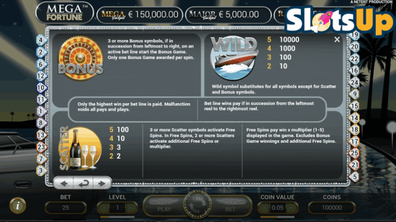 Mega Fortune to gra, która zrodziła milionerów od 2008 roku, kiedy to została wydana. Największa wygrana w tym internetowym slocie z jackpotem wyniosła 17,8 miliona euro w styczniu 2013 roku. Mimo że Mega Fortune jest jednym z najdłużej działających automatów, wielu wciąż go uwielbia. Gra slotowa rozgrywa się na tle Monte Carlo z luksusowymi jachtami i pięknymi palmami.