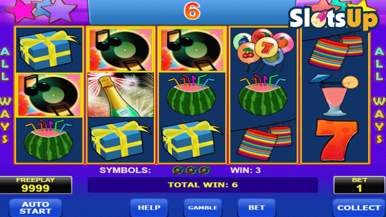 Demo slotu Party Time pozwala poznać zasady gry bez ryzyka utraty pieniędzy, zrozumieć zasadę wygrywania i grać dla zabawy. Ten slot sprawi, że nie będziesz się nudzić - imprezowa atmosfera zaczyna się wraz z uruchomieniem gry. Butelki szampana, muzyka, balony - to prawdziwa impreza.