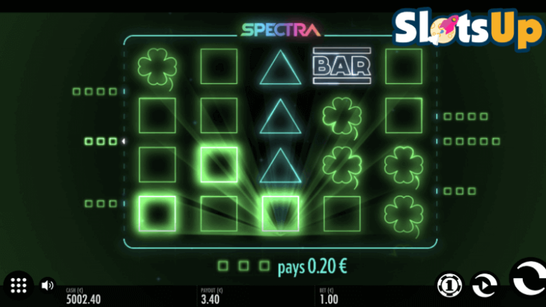 Slot Spectra nie jest bogaty, jeśli chodzi o funkcje. Niemniej jednak jest ich wystarczająco dużo, aby zainteresować nawet doświadczonych graczy. Wild, reprezentowany przez literę "W" w kolorach tęczy, zastępuje inne zwykłe obrazy, oferując nagrody. Może układa ć się w stos, aby pokryć cały bęben, aby zmaksymalizować możliwości wypłaty i aktywować darmowy obrót. Ta lawina dodatkowych obrotów może być kontynuowana, jeśli symbole Wild nadal będą pojawiać się podczas darmowych obrotów.