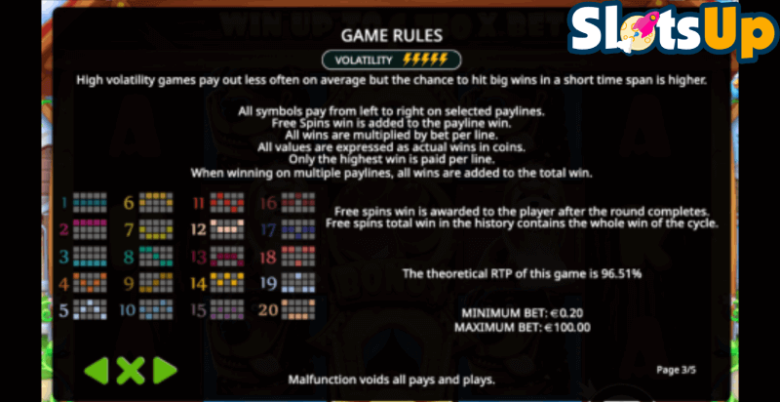 Wielkość zakładu waha się od 0,20 € do 100,00 € na obrót, co jest idealne dla różnych graczy. Przy współczynniku RTP (zwrot dla gracza) wynoszącym 96,51%, możesz spodziewać się rozsądnego zwrotu z zakładów w czasie.