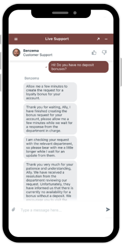 Strona internetowa kasyna Abu King podaje, że czat na żywo jest dostępny 24 godziny na dobę, 7 dni w tygodniu, a ja testowałem go o różnych porach - zawsze otrzymywałem odpowiedź od razu. Agenci zawsze odpowiadali szczegółowo i starali się pomóc we wszystkim.