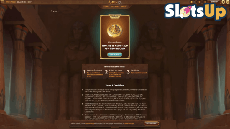 Aby odwiedzić AmunRa, musisz mieć co najmniej 18 lat, zgodnie z prawem w Stany Zjednoczone i warunkami AmunRa