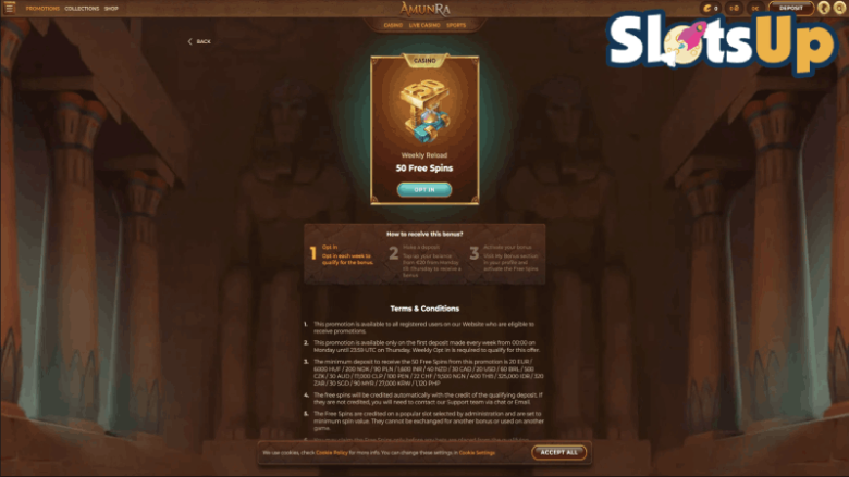 Jeśli nie interesują Cię bonusy AmunRa, odwiedź strony z listami SlotsUp, aby znaleźć bonusy dostępne w Twoim kraju i przefiltruj je według swoich preferencji.