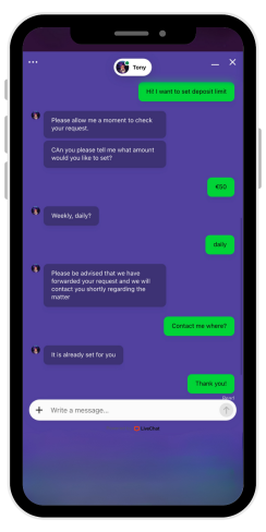 Silne narzędzia odpowiedzialnego hazardu - limity depozytów, strat, sesji i zakładów można ustawić za pośrednictwem pomocy technicznej, a mój limit został zastosowany natychmiast po zgłoszeniu.