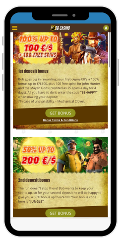 Gracze mogą ubiegać się o bonusy powitalne przy pierwszych trzech depozytach. Więcej szczegółów na temat bonusów Bob Casino można znaleźć tutaj.
