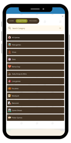 Kasyno posiada wygodny katalog gier. Gry Bob Casino można wyszukiwać według nazwy, kolekcji lub dostawcy. Dostępne kolekcje obejmują: Nowe gry, Bonus Buy, Ruletka, Pokazy gier, Codzienne spadki i wygrane, Blackjack, Gry pokerowe, Sloty, Gry na żywo i Baccarat. Gracze mogą również zapisywać gry w Ulubionych i przeglądać poprzednio grane tytuły w Ostatnio granych. Zauważyłem również, że od czasu do czasu mogą pojawiać się kolekcje tematyczne, na przykład Xmas.