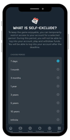 Strona internetowa podaje, że gracze mogą ustawić limity depozytów i korzystać z funkcji samowykluczenia na swoim koncie osobistym, ale nie jest to do końca dokładne. Funkcja samowykluczenia jest dostępna, natomiast limity depozytów nie. Pomoc techniczna twierdzi, że limity depozytów są nadal w fazie rozwoju.