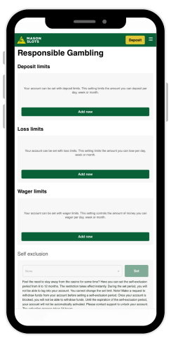 Szeroka gama narzędzi do odpowiedzialnej gry - kasyno Mason Slots oferuje szeroki zestaw limitów i funkcji samokontroli, pokazując, że kasyno naprawdę priorytetowo traktuje bezpieczeństwo graczy i odpowiedzialne zachowanie.