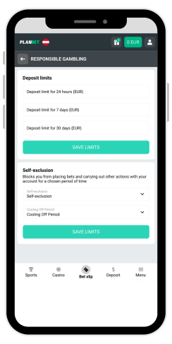 Kasyno Planbet oferuje solidny zestaw narzędzi do odpowiedzialnego hazardu. Na koncie osobistym gracze mogą ustawić limity wpłat (dzienne, tygodniowe lub miesięczne). W tej samej sekcji można również poprosić o okres karencji lub samowykluczenie. Jeśli gracz chce również ustawić limity zakładów, musi skontaktować się z obsługą klienta za pośrednictwem poczty elektronicznej.