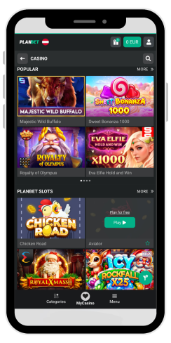 Gry są podzielone na kolekcje: Sloty Planbet, Popularne, Nowe, Winter Vibe Top, Crash, Cluster, sloty "Book of", Drop & Wins, Buy Bonus, Klasyczne sloty, Megaways, Hold and Win oraz Cascade.