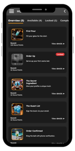 Każdy poziom ma swoje własne wymagania. Na przykład, aby osiągnąć VIP Gold, gracz musi zebrać 20,000 punktów. Gracze zdobywają 1 Nova Point za każde 85 PLN postawione na automatach, 1 Nova Point za każde 170 PLN postawione w grach kasynowych na żywo lub 3 Nova Points za każde 210 PLN zdeponowane. Oznacza to, że status VIP można uzyskać, wpłacając ponad 1,412,000 PLN lub obstawiając około 1,696,000 PLN na automatach.