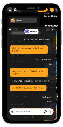 Najwygodniejszym sposobem uzyskania odpowiedzi na pytania jest kontakt za pośrednictwem czatu na żywo. Agenci łączą się bardzo szybko i zapewniają szczegółową pomoc. Ponadto, podczas pracy nad tą recenzją VegasNova, miałem pytanie dotyczące programu VIP i zostałem natychmiast przeniesiony do menedżera VIP, który dokładnie wyjaśnił, jak to działa - mimo że dopiero się zarejestrowałem i nie miałem historii płatności ani gier. Podobało mi się takie podejście do graczy.